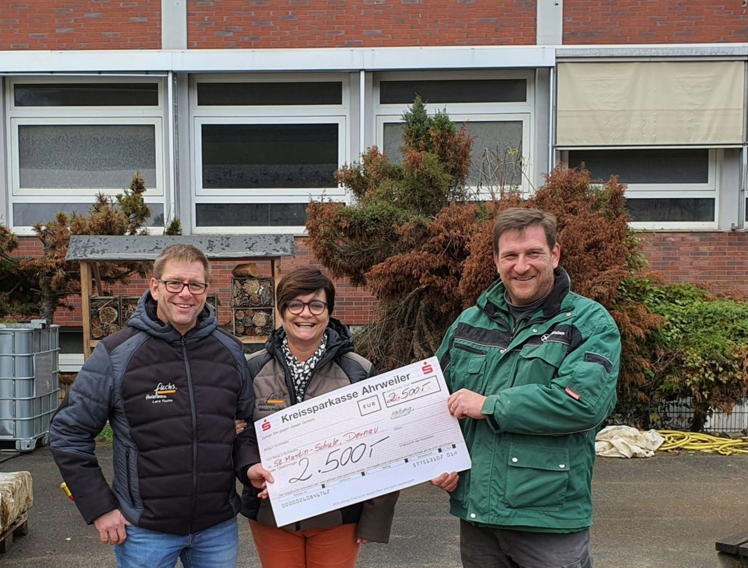 Wie auch in den Jahren zuvor, hat die Firma Holzbau Fuchs aus Kelberg auf Werbegeschenke zur Weihnachtszeit verzichtet und sich stattdessen entschieden, einen Betrag in Höhe von 2.500 € dem Förderverein der St. Martin-Schule in Dernau/Ahr zu spenden.