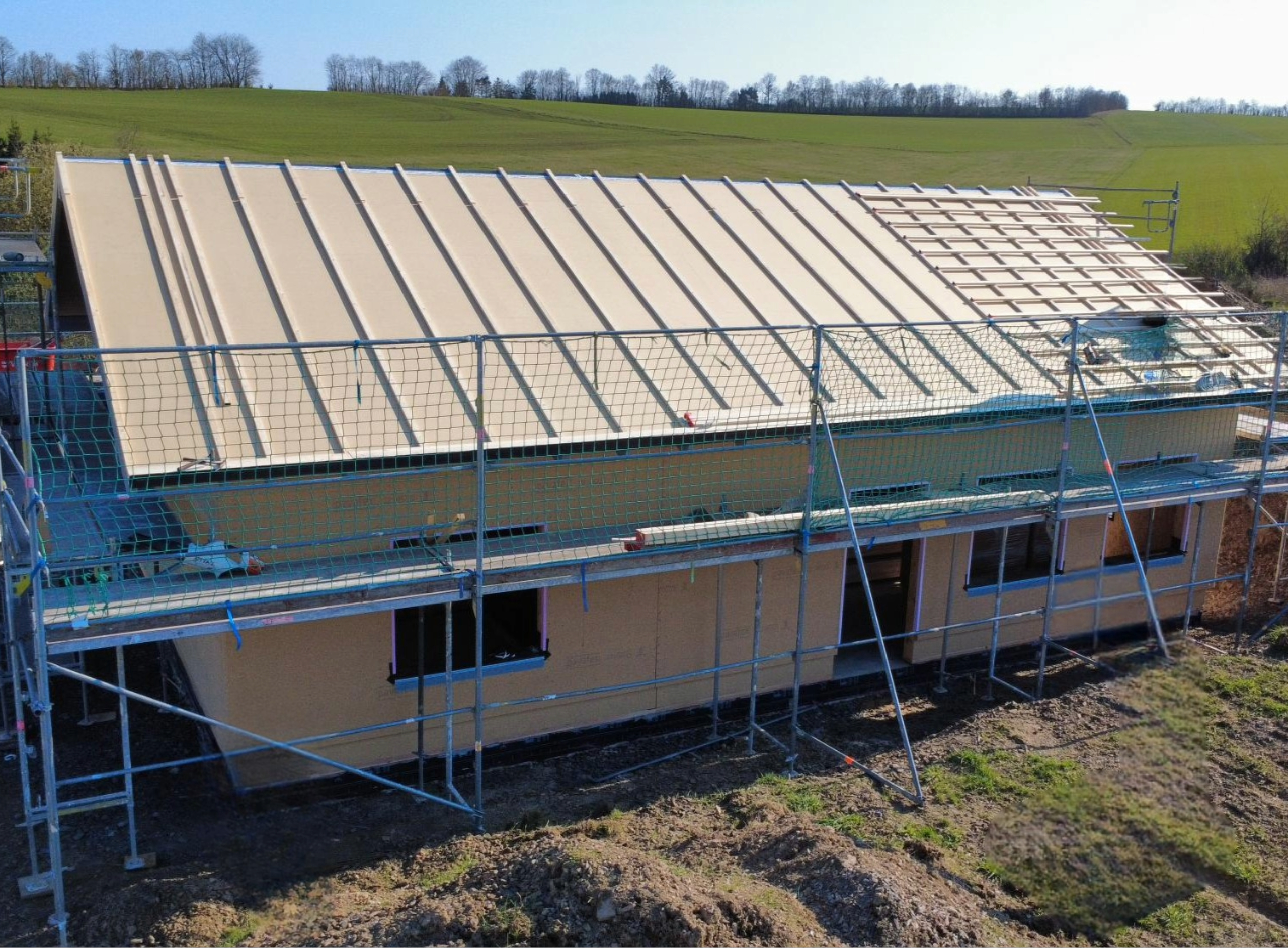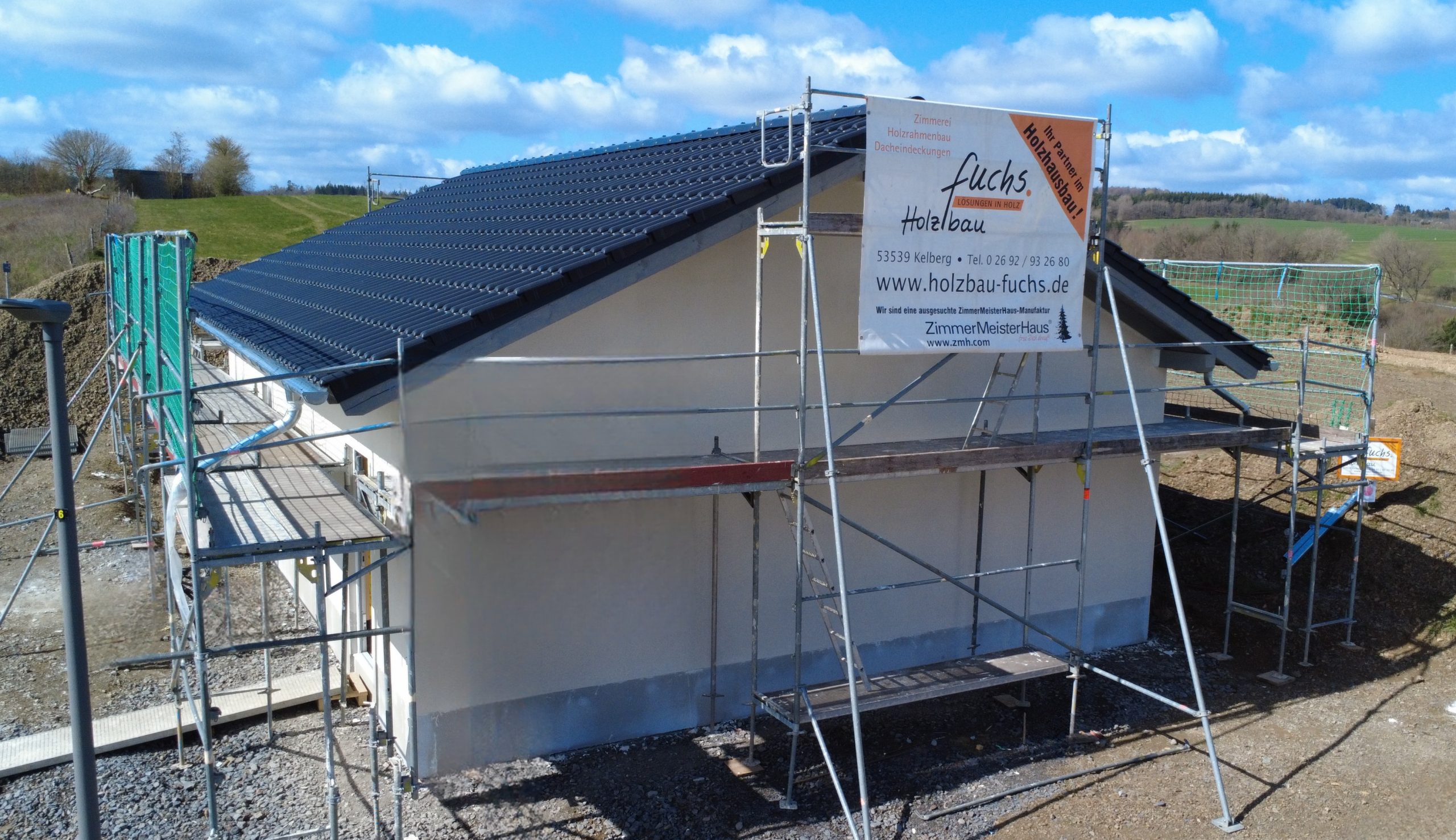 Ab Montag, 16.03.2026 errichtet Holzbau Fuchs eine Gitarrenbau-Werkstatt in Holzrahmenbauweise ab OK Bodenplatte in 54552 Schönbach, Auf dem Scheid 24.