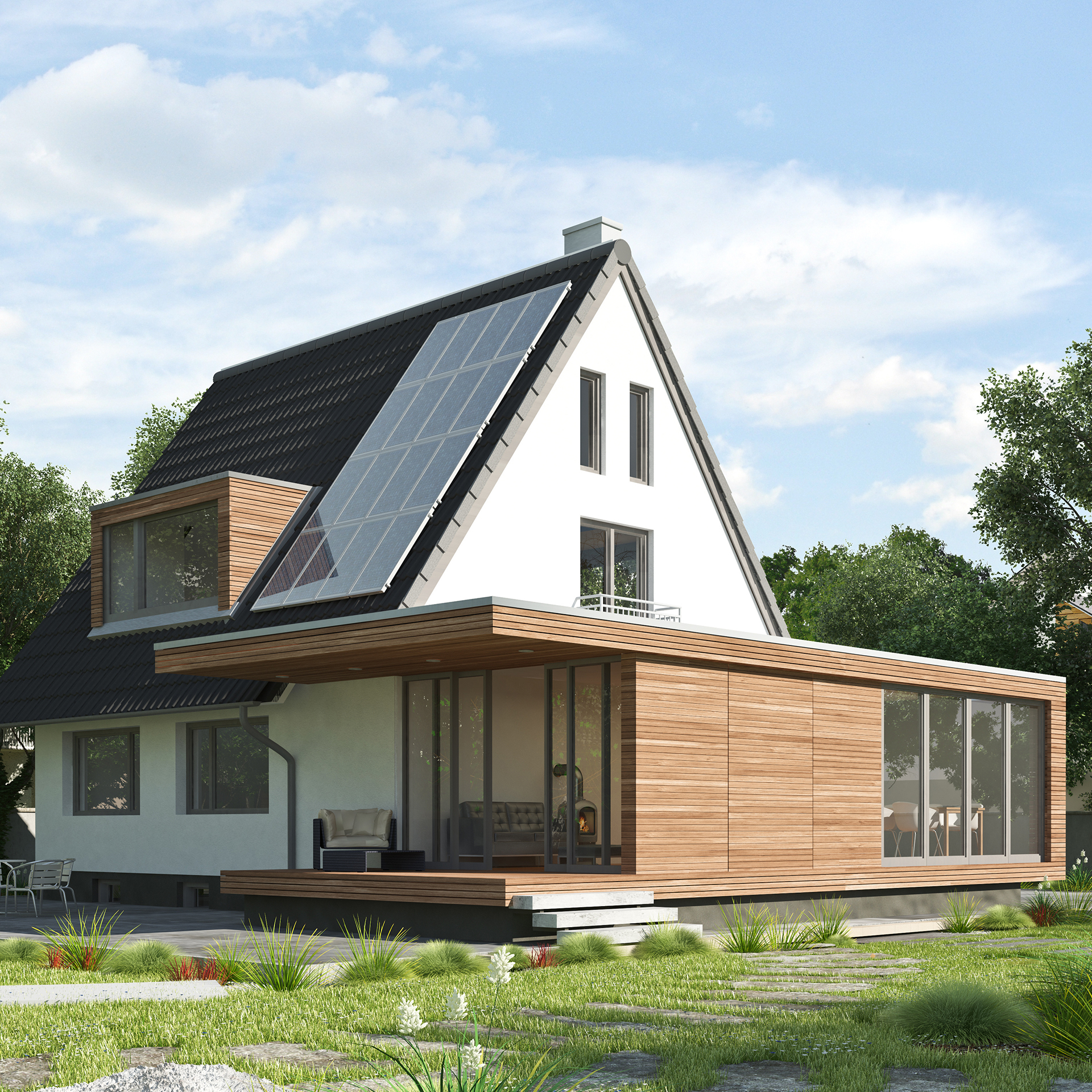 Egal, ob die Basis ein Holz- oder Massivhaus ist, bauen im Bestand geht immer mit Holz. Es ist ein leichter und trotzdem sehr tragfähiger Werkstoff, mit dem sich wunderbar an ein bestehendes Gebäude anschließen lässt.