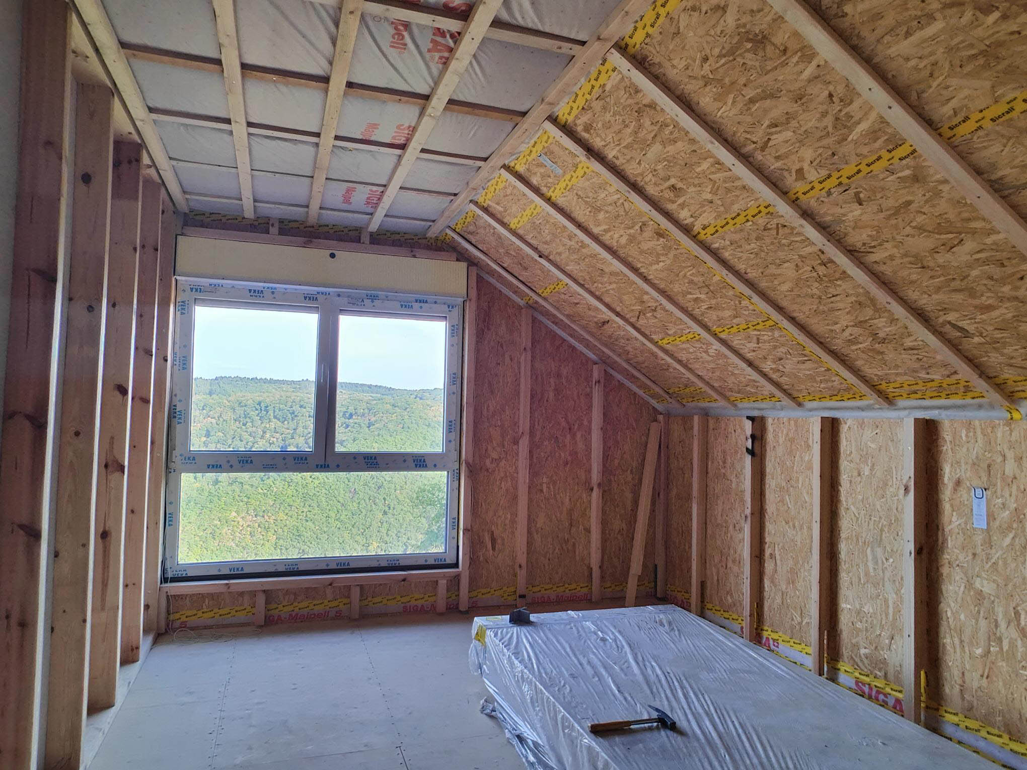 Wenn Sie möchten, können Sie ab hier bereits den Trockenbau in Eigenleistung fertigstellen – man spricht dann von einem Ausbauhaus. Mit etwas handwerklichem Können und Zeit ist dies ohne weiteres machbar.