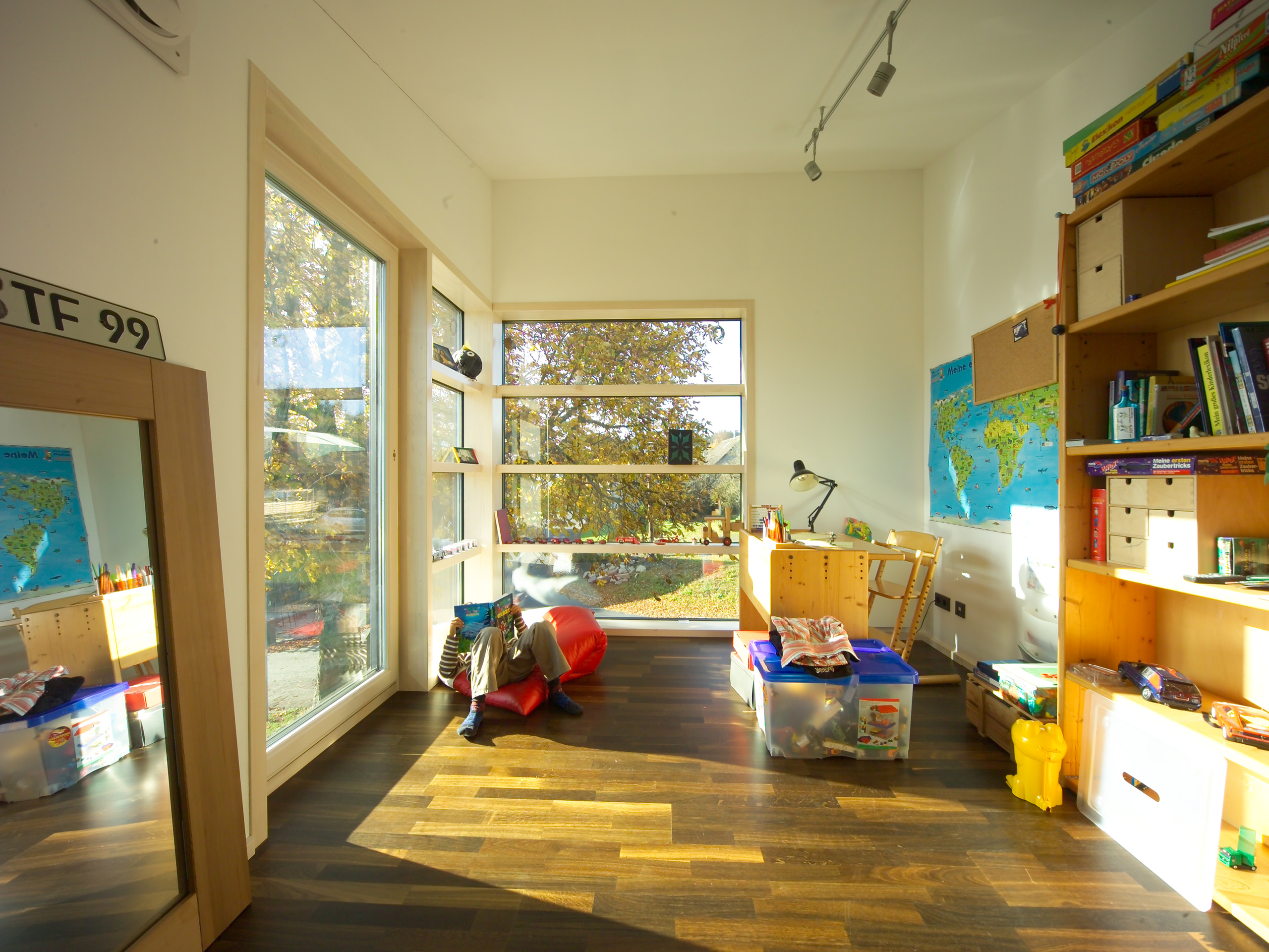 Ist der Einstieg geglückt, können die Bewohner getrost der Zukunft entgegensehen: Ihr Haus Baukasten lässt sich auf fast alle Wechselfälle des Lebens einstellen. Zum Beispiel auf neuen Nachwuchs: Das Starterhaus bietet bereits ausreichend Platz für eine dreiköpfige Familie, beim zweiten Kind wird aber wieder ein Griff in den Haus Riesenbaukasten fällig. Das Starterhaus hat 84 m² Wohnfläche; alle Erweiterungsbauten finden außerhalb des Hauses statt und beeinträchtigen nicht Ihren Wohnkomfort.