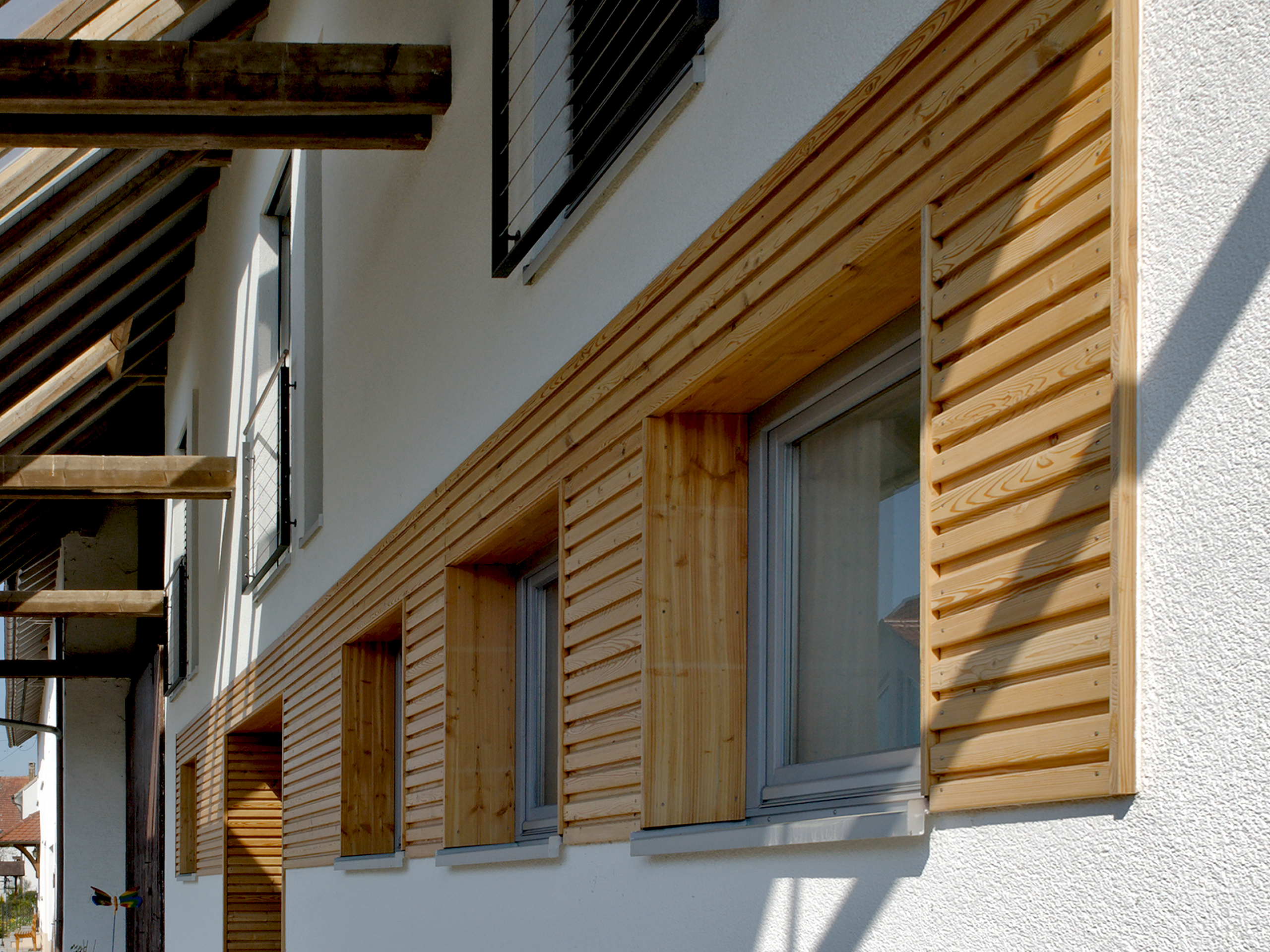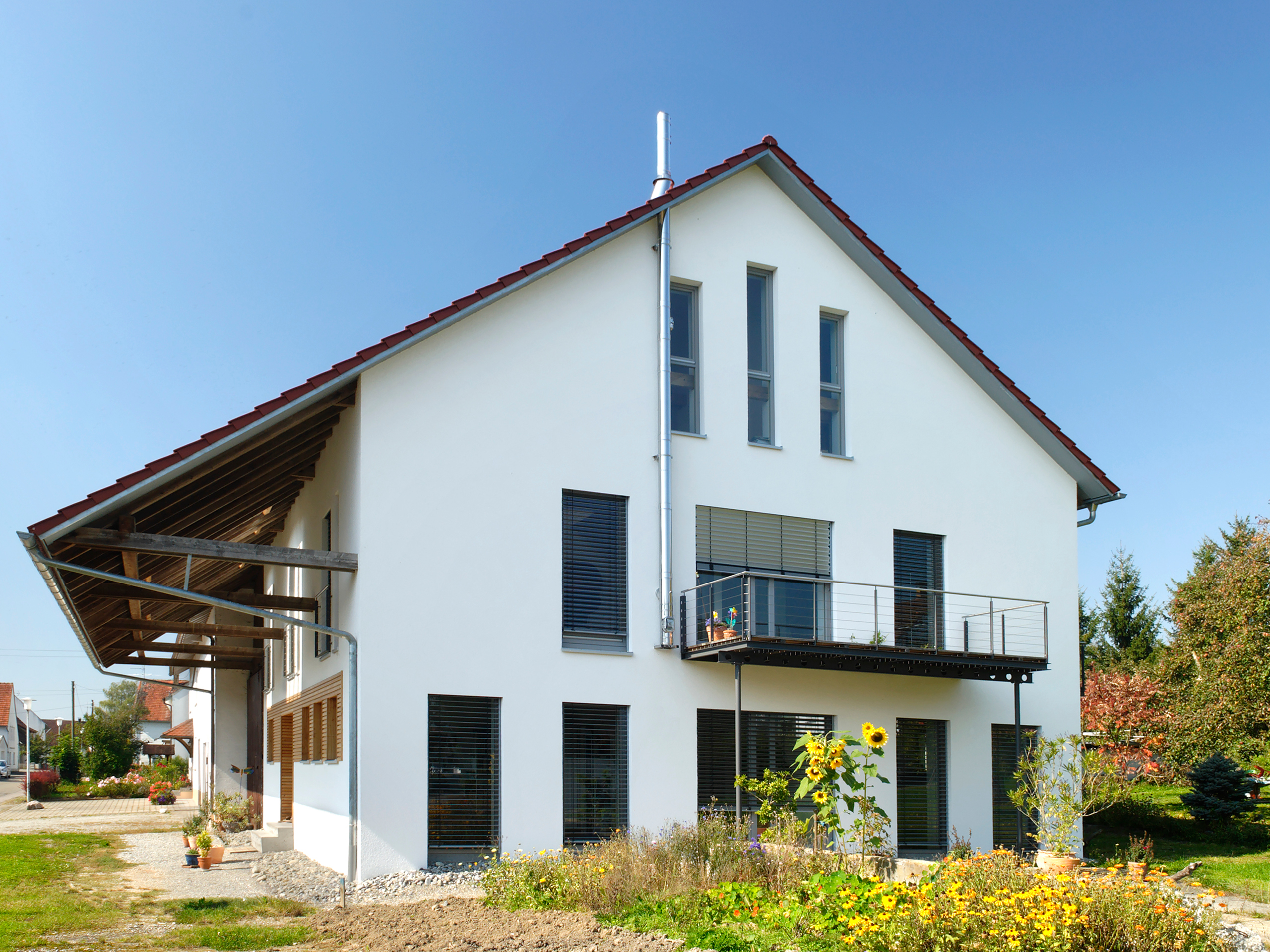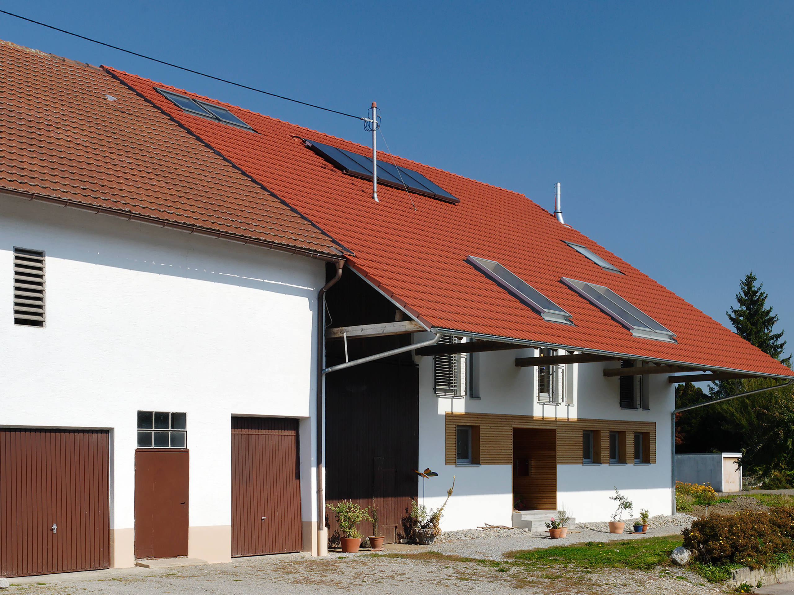 Der Bauernhof in schöner Ortslage gehört den Eltern der Bauherrin. Da sie und ihr Mann als Unternehmensberater und Coaches viel von zuhause aus arbeiten, wollte die junge Familie Wohnen und Arbeiten unter ein Dach bekommen. Der ehemalige Kuhstall schien perfekt geeignet – das sah auch der Chef der regionalen ZimmerMeisterHaus-Manufaktur sofort.