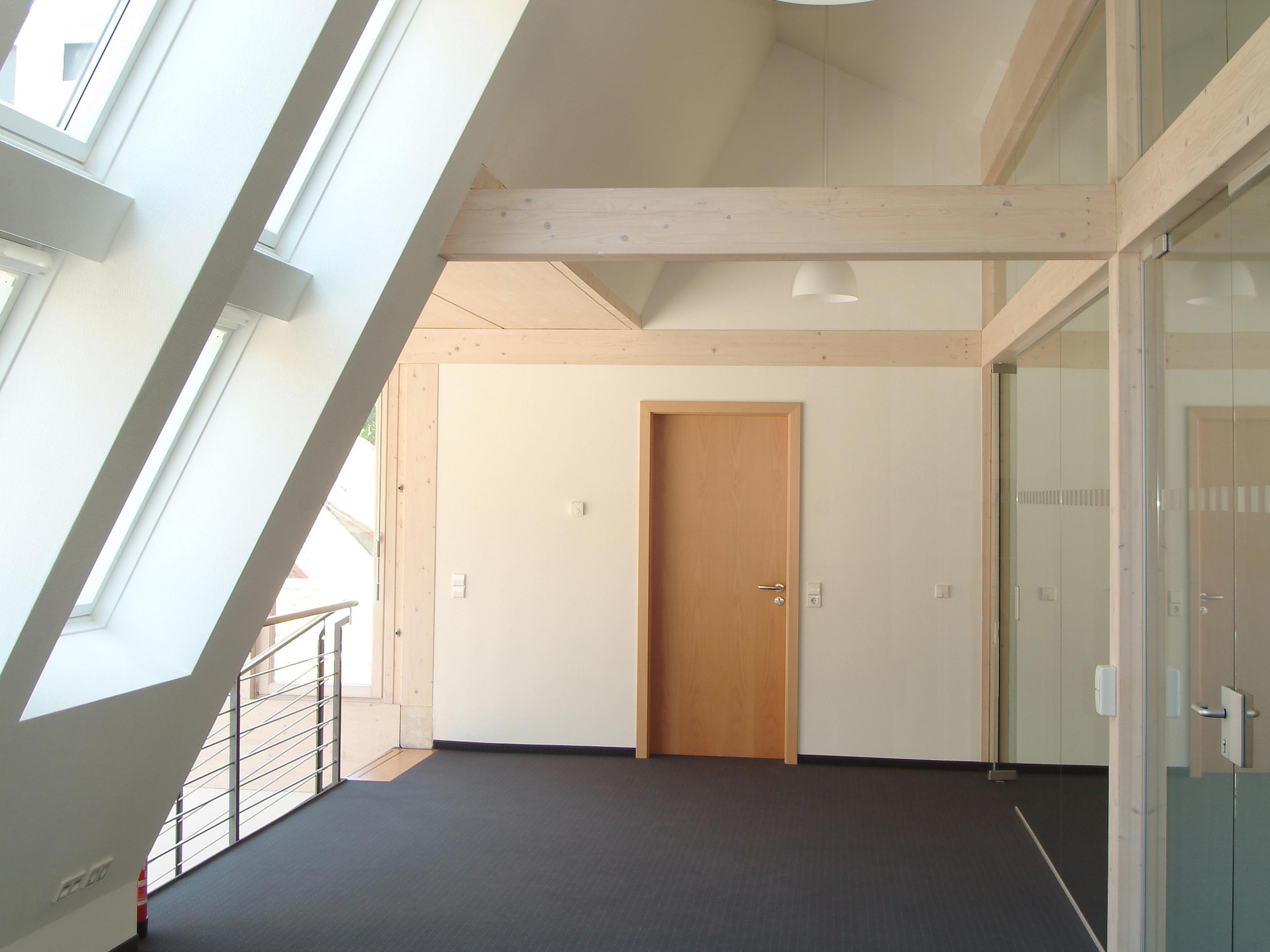 Eine Lüftung mit Wärmerückgewinnung unterstützt die Heizung und sorgt für gute Luftqualität, die Abwärme der EDV wird zur Brauchwassererwärmung genutzt. Die Photovoltaik-Anlage mit 21 KW deckt den größten Teil des Energiebedarfs.