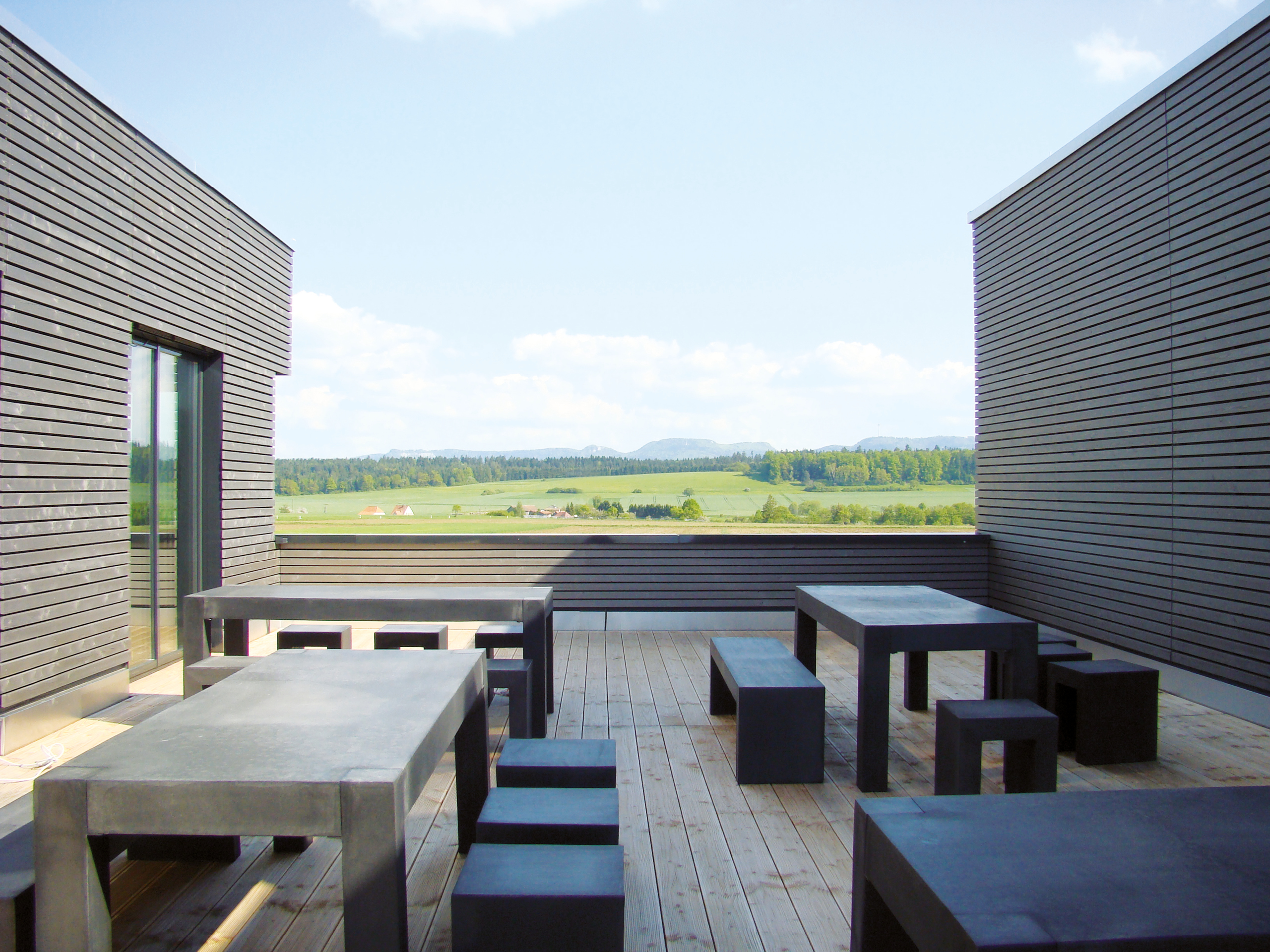 Nicht nur im privaten Wohnhaus zeichnet sich Holz durch sein angenehmes Raumklima aus: Auch Arbeitsräume profitieren von den regulierenden Eigenschaften des nachhaltigen Baustoffs. Beispielsweise trägt Holz zur akustischen Verbesserung bei, indem es Schall auf natürliche Weise dämpft und sorgt zudem für ein ausgewogenes Feuchtigkeitsniveau im Innenraum.