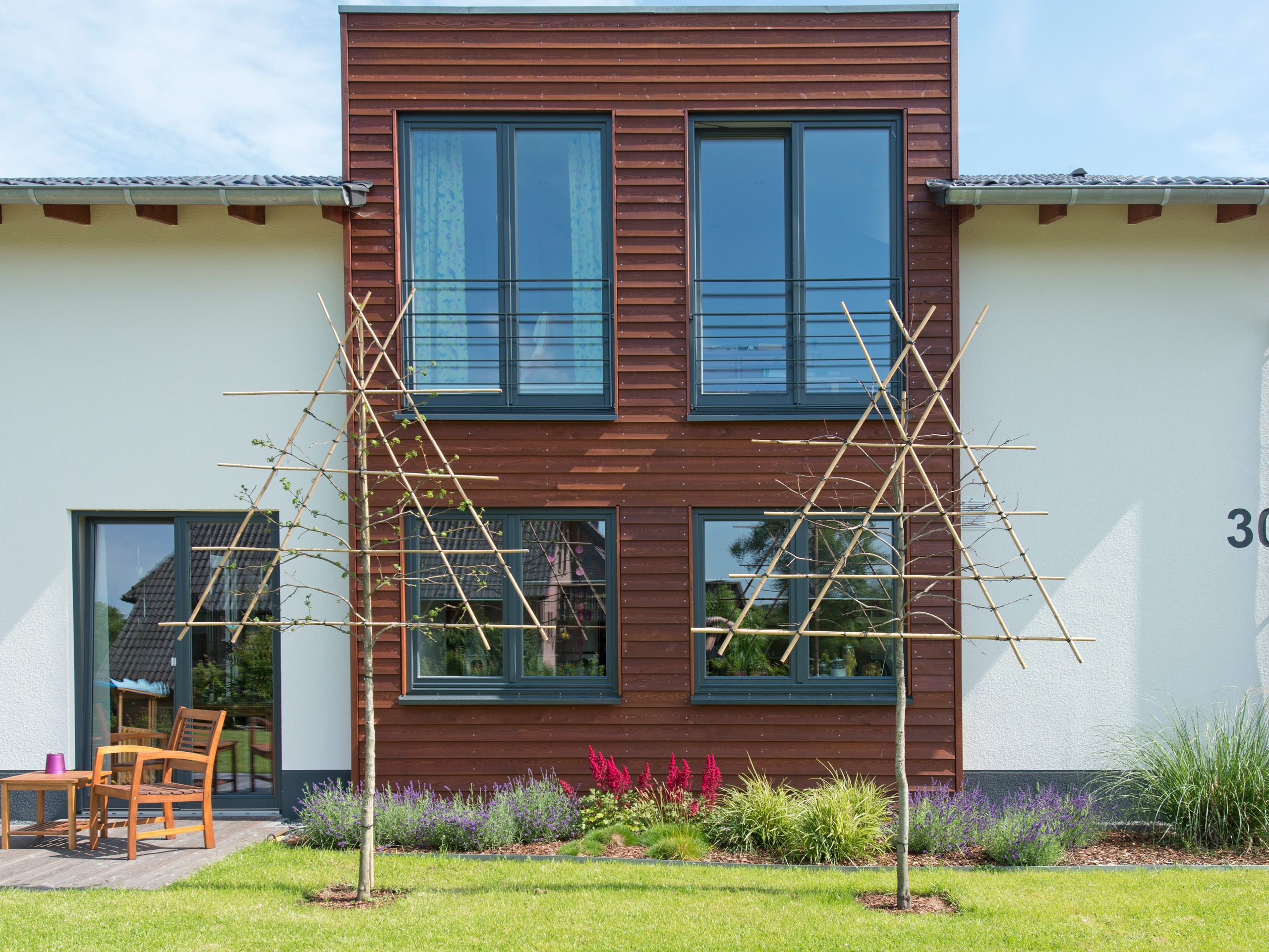 Dies lässt sich kompakt in einem clever geschnittenen Haus für zwei Parteien, oder eine Nummer größer in einer Wohnsiedlung mit Gemeinschaftsflächen realisieren.