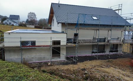 Wir liefern hier die komplette Gebäudehülle incl. Fensteranlage, Außenfassade und Dacheindeckung (Steil- und Flachdach).