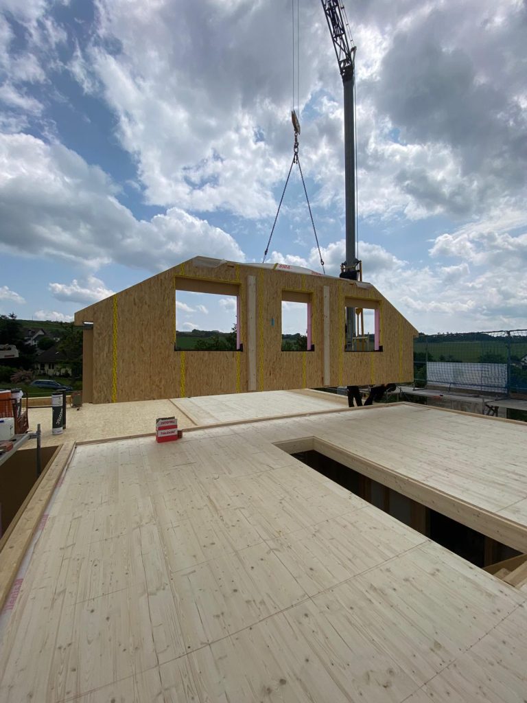 Alle vorgefertigten Holzbauteile werden geliefert und montiert, die einzelnen Gewerke greifen ineinander – Schritt für Schritt entsteht Ihr Gebäude.