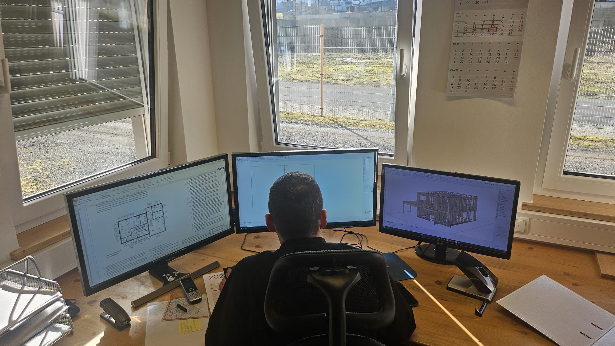 Bei der Holzbauplanungerstellen wir durch CAD/CAM präzise Pläne für die Vorfertigung, die an die Abbundmaschinen übergeben werden.